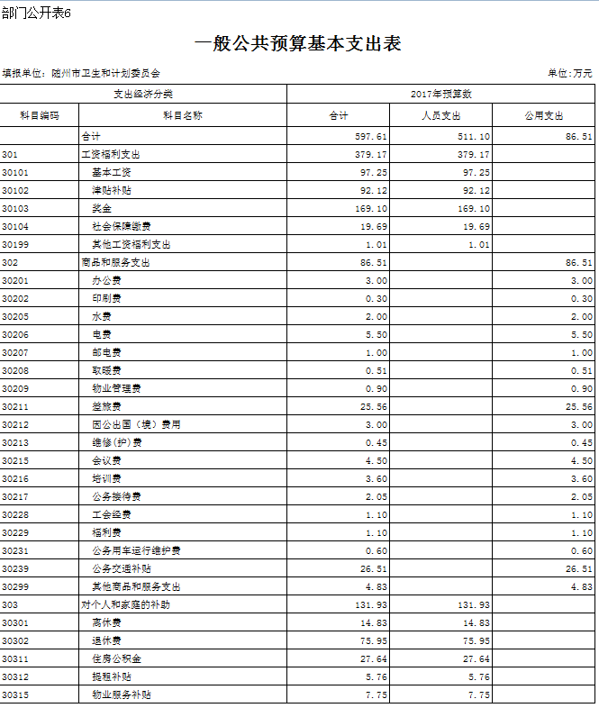 (四)機關運行經(jīng)費預算情況。2017年預算基本支出公用經(jīng)費86.51萬元,分別為:辦公費3萬元,印刷費0.3萬元,水電費7.5萬元,取暖費0.51萬元,郵電費1萬元,差旅費25.56萬元,維修費0.45萬元,物業(yè)管理費0.9萬元,會議費4.5萬元,培訓費3.6萬元,因公出國費用3萬元,公務接待費2.05萬元,工會經(jīng)費1.1萬元,福利費1.1萬元,公務用車運行維護費0.6萬元,公務交通補貼26.51萬元,其他商品服務支出4.83萬元。