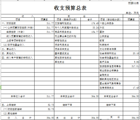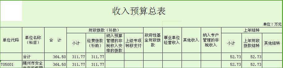 市安監局公共預算財政撥款(補助)311.77萬元,上年財政撥款結轉52.73萬元,收入總計364.50萬元。