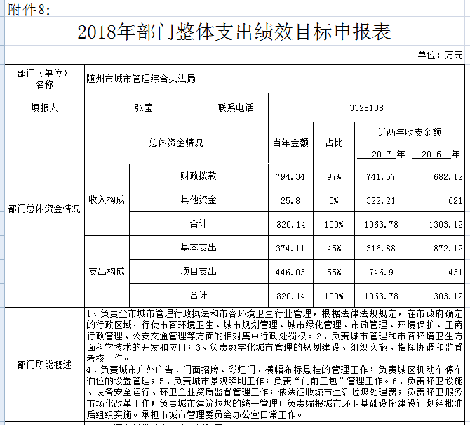 第二部分 市城管局2018年部門預算情況說明