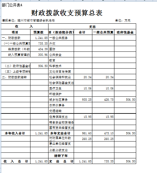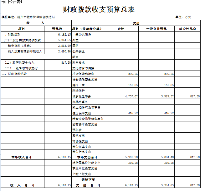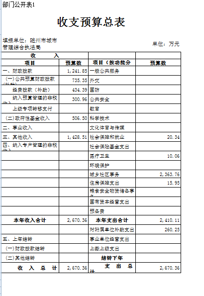 1、本部門財政撥款收入情況