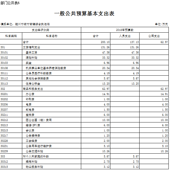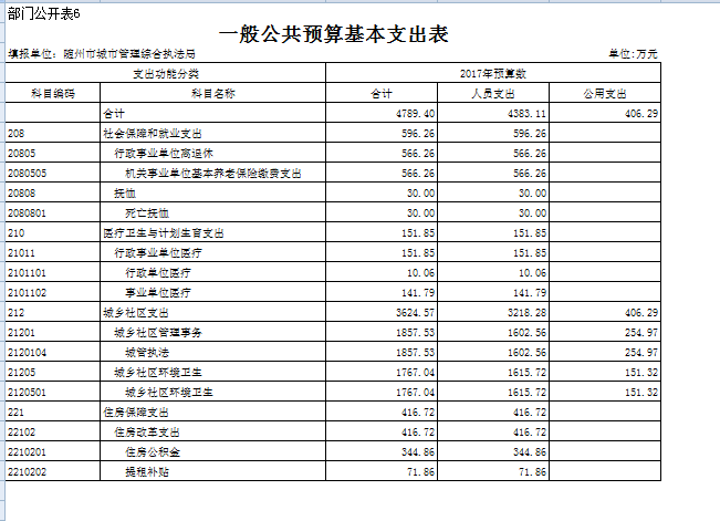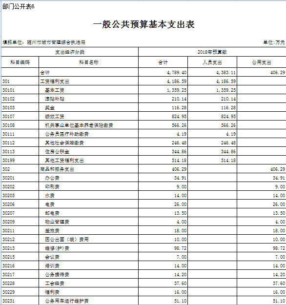 六、執法局本級預算表