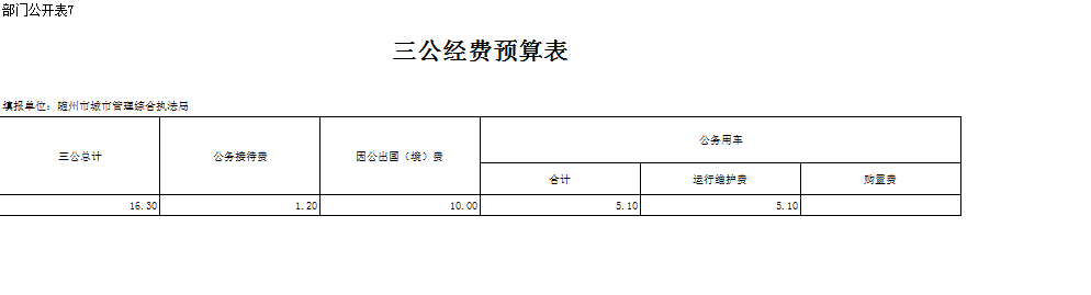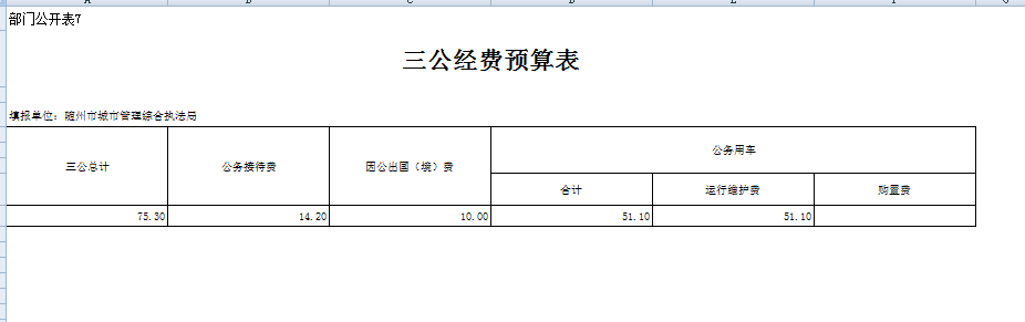 2018年城管局系統“三公”經費75.30萬元,其中公務接待費14.20萬元,比上年減少2.2萬元,同比減少了18.3%,主要是單位嚴格按公務接標準接待,嚴格控制接待。因公出國費10萬元,與上年持平,原因是領導有可能要參加政府組織的出國考察活動;公務用車運行維護費51.10萬元,比上年增加5.5萬元,同比增加了12%,因為車輛老化,維修費用增加。本年沒有購置新車。