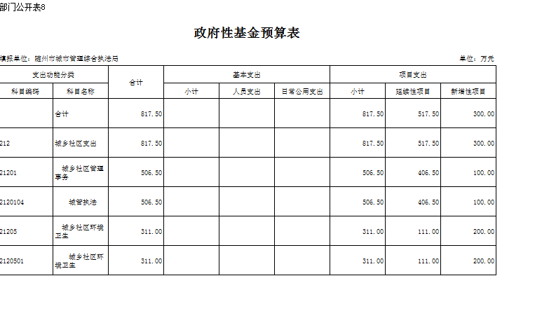 2018年城管局系統政府性基金817.5萬元。其中延續性基金517.5萬元,比去年增加項目基金300萬元。比上年增加了40%,主要是政府新增項目。