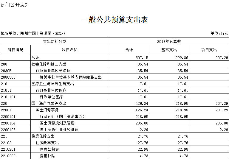 第二部分隨州市國土資源局2018年部門預算情況說明