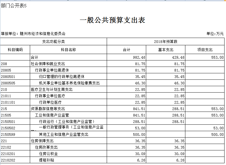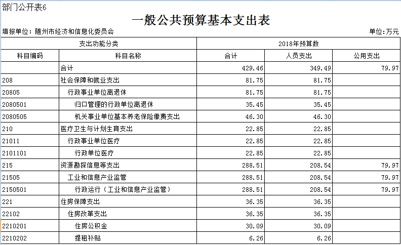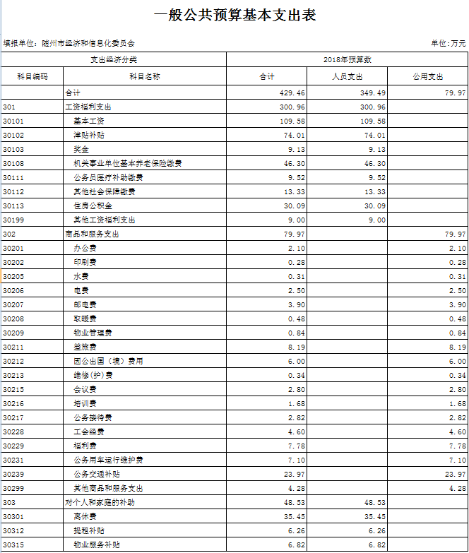 隨州市經(jīng)濟和信息化委員會2018年財政預(yù)算公開