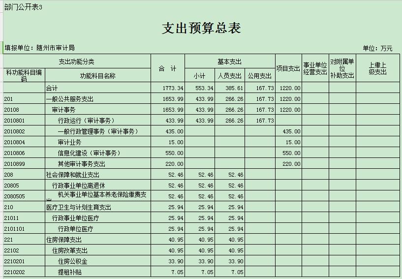 一般公共服務支出(類)審計事務(款)一般行政管理事務(項):反映審計部門未單獨設置項級科目的其他項目支出。