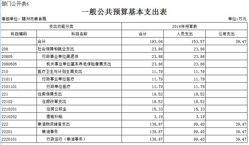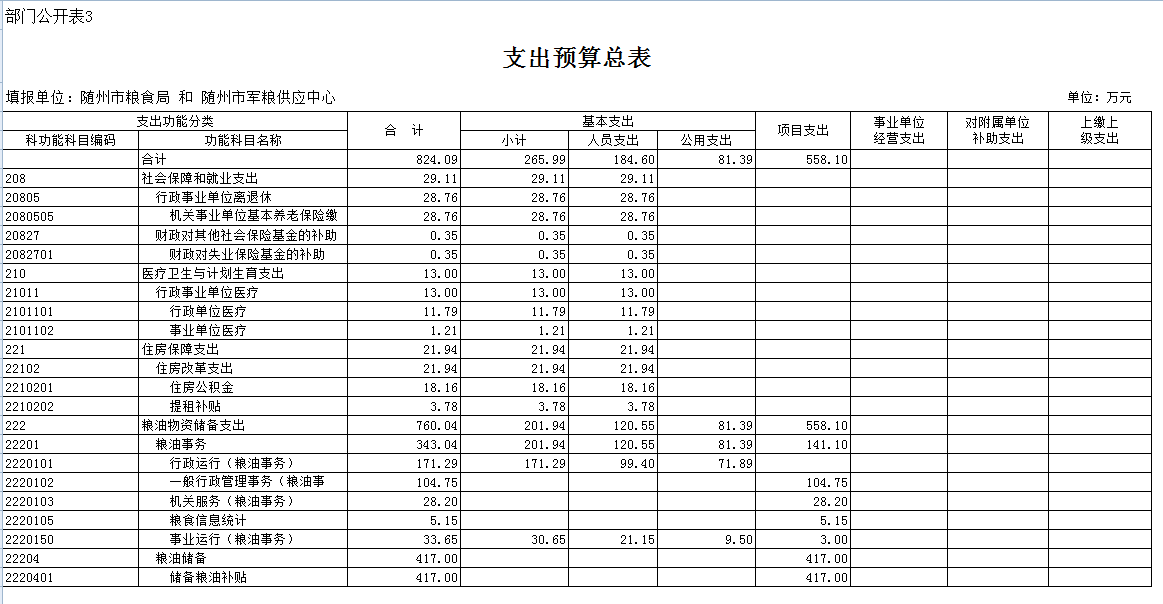 2220102 糧油物資儲備支出(類)糧油事務(款)行政運行(項):指市糧食局用于保障機構正常運行,開展日常工作的基本支出。