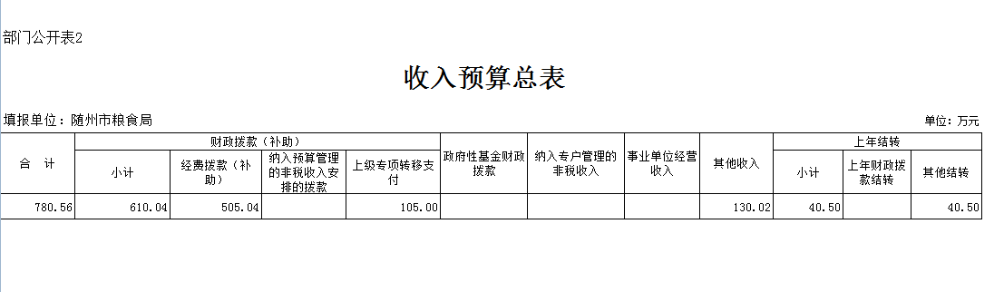 2018年糧食局本級預算收入總額780.56萬元,比去年864.29萬元減少83.73萬元,同比減少9.69%,減少主要原因是預算中不包含退休人員的工資及職工獎勵性工資。