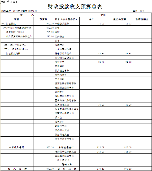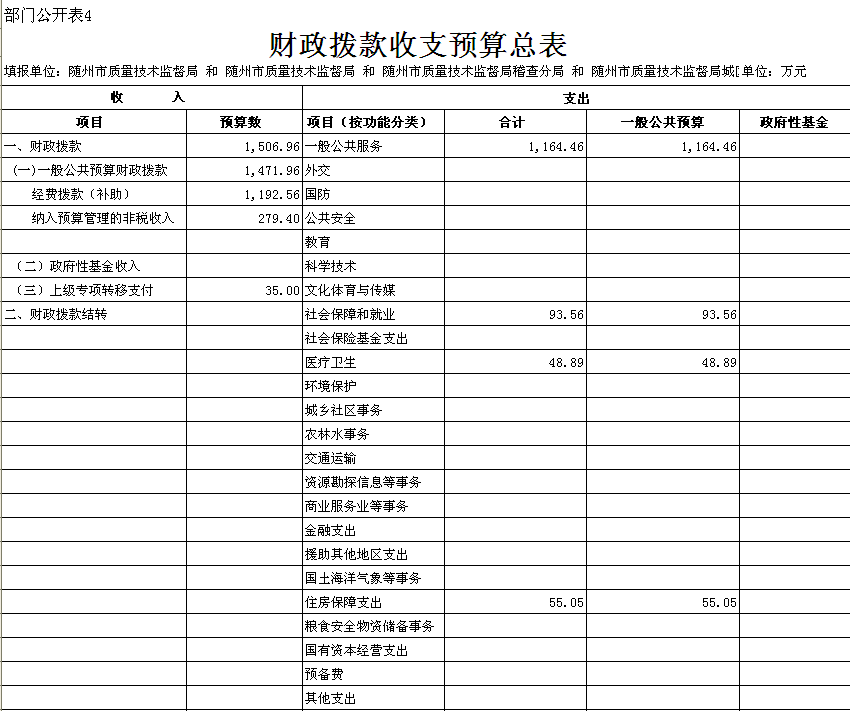 四、財(cái)政撥款收支總表