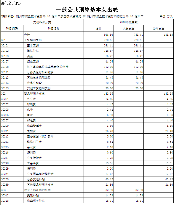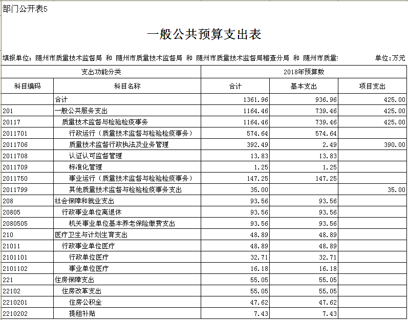 隨州市質(zhì)量技術(shù)監(jiān)督局2018年部門預(yù)算