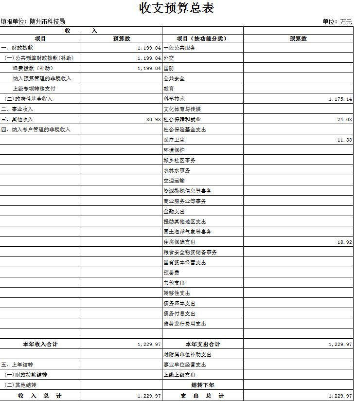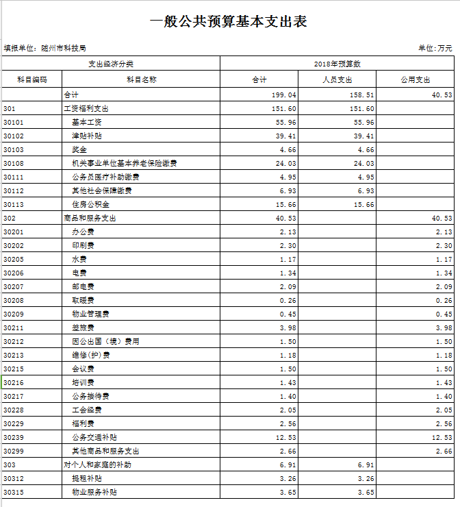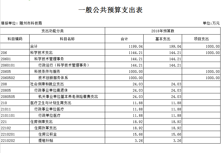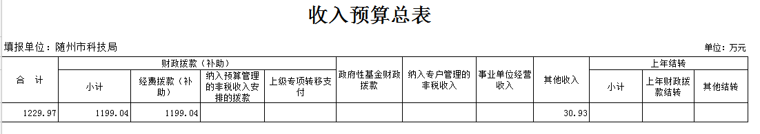 第三部分 隨州市科技局2018年部門預算表
