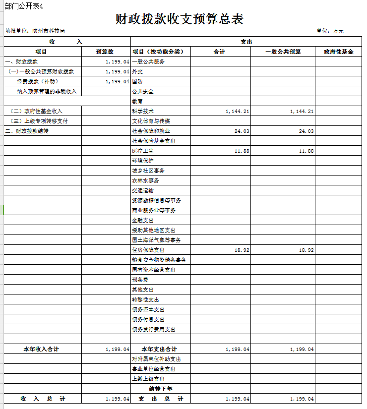 四、財政撥款收支預算總表