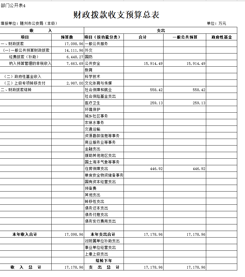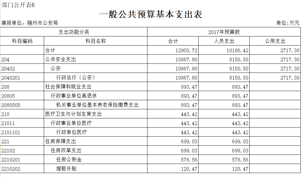 隨州市公安局預算(本級)含市局機關及高新區公安分局,但不含消防支隊預算。其中: