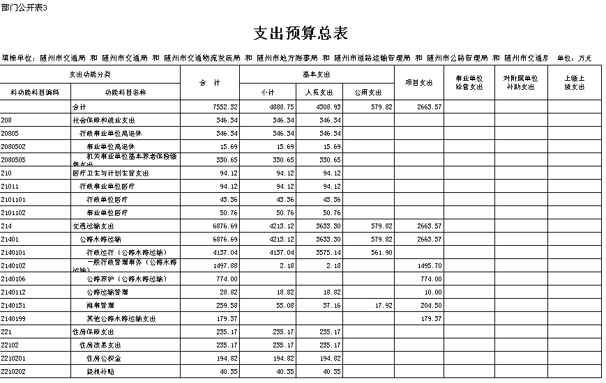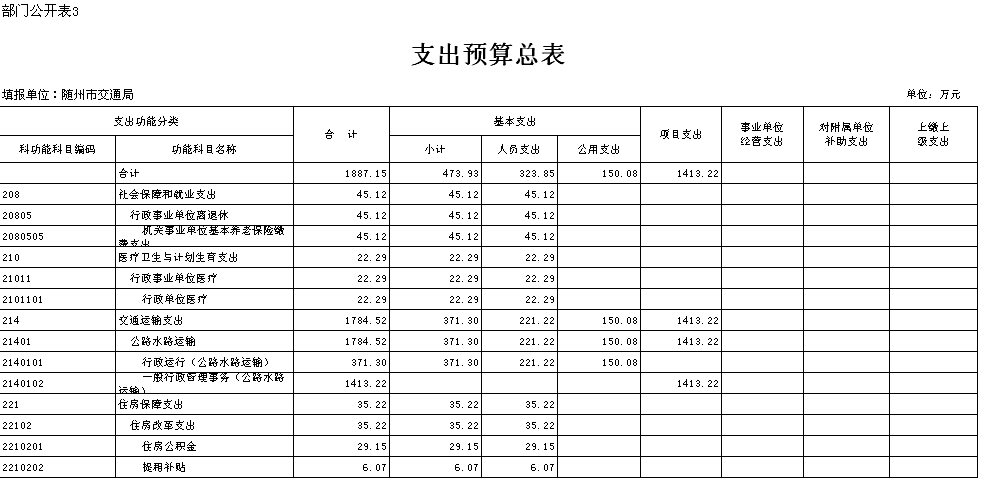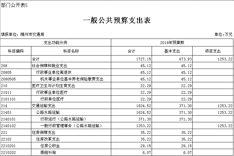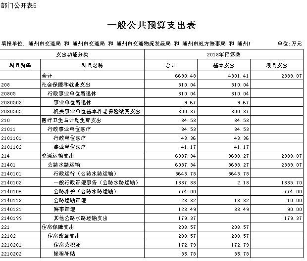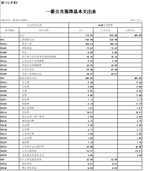 第三部分:隨州市交通系統(tǒng)2018年部門預(yù)算表