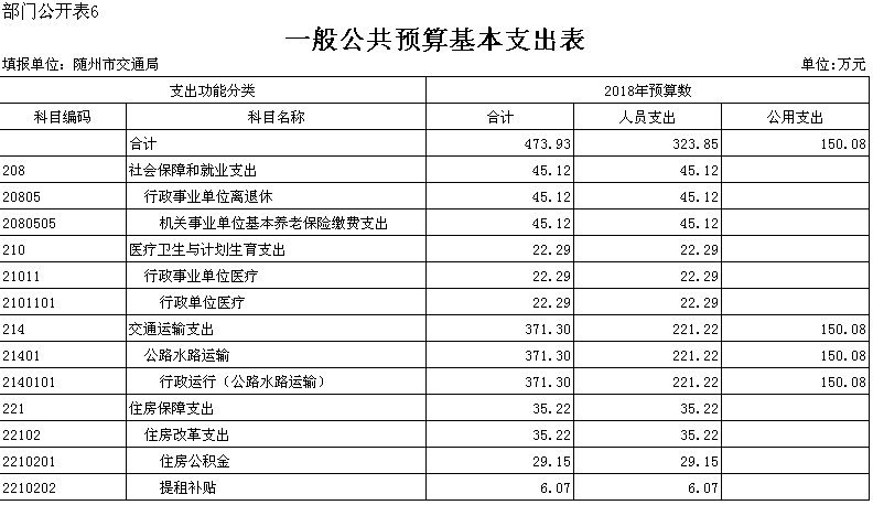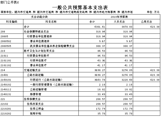 第四部分 隨州市交通局本級2018年部門預(yù)算表