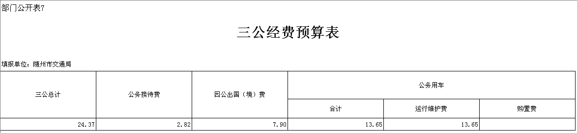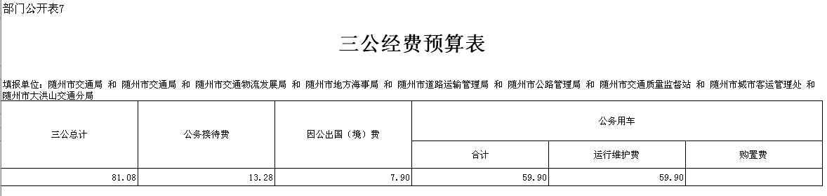 嚴(yán)格執(zhí)行《黨政機(jī)關(guān)國內(nèi)公務(wù)接待制度》,嚴(yán)禁公款吃喝和高消費(fèi)娛樂等支出,2018年匯總交通系統(tǒng)三公經(jīng)費(fèi)預(yù)算81.08萬元,;公務(wù)接待費(fèi)13.28萬元;公務(wù)用車運(yùn)行維護(hù)費(fèi)59.9萬元。出國經(jīng)費(fèi)預(yù)算7.9萬元。三公經(jīng)費(fèi)同比去年繼續(xù)下降,下降3.4萬元,下降4%。其中:1、公務(wù)接待費(fèi)較上年下降7.79萬元,下降36.9%。因嚴(yán)控公務(wù)接待范圍,嚴(yán)禁同城招待;2、出國經(jīng)費(fèi)下降7.5萬元,下降48.7%。因嚴(yán)控出國考察人員及次數(shù);3、因車輛老化及要求工作深入基層,加強(qiáng)與基層聯(lián)系與指導(dǎo),下鄉(xiāng)及深入一線次數(shù)大大增加,使車輛運(yùn)行及維護(hù)費(fèi)用加大,較上年增加11.89萬,增長24.76%。無公務(wù)車購置支出預(yù)算,與上年無變化。我局繼續(xù)強(qiáng)化公務(wù)車管理,要求進(jìn)一步規(guī)范公務(wù)用車管理,實行定點(diǎn)維修、加油、統(tǒng)一保險,嚴(yán)控支出。