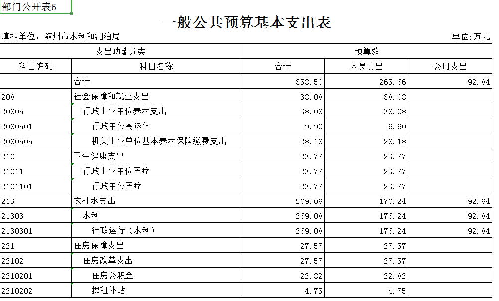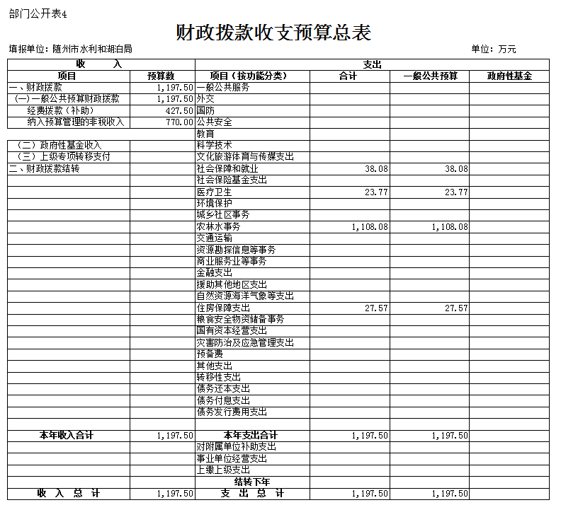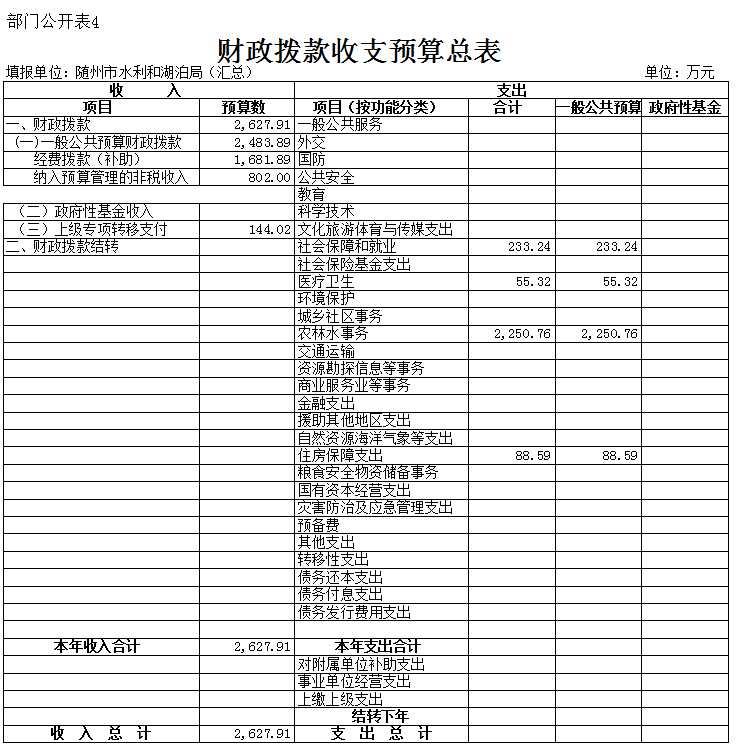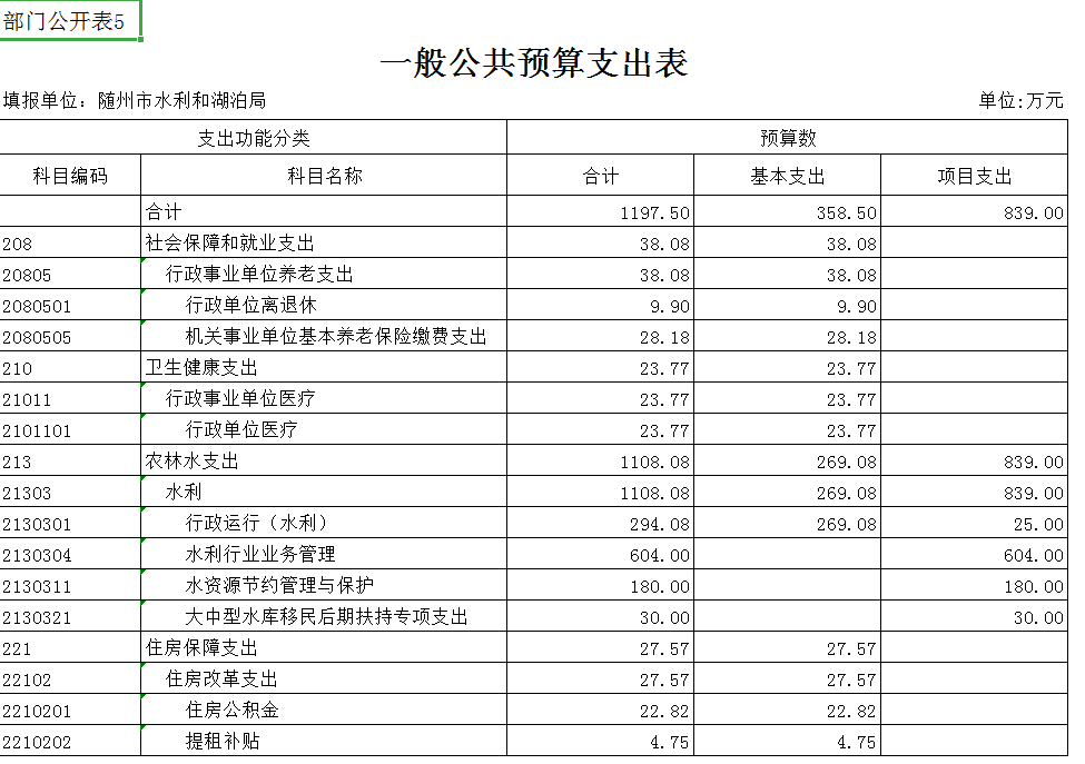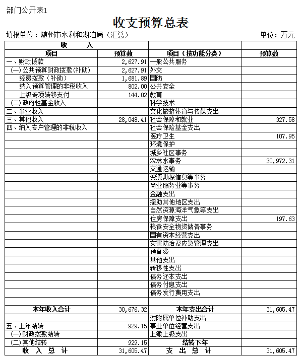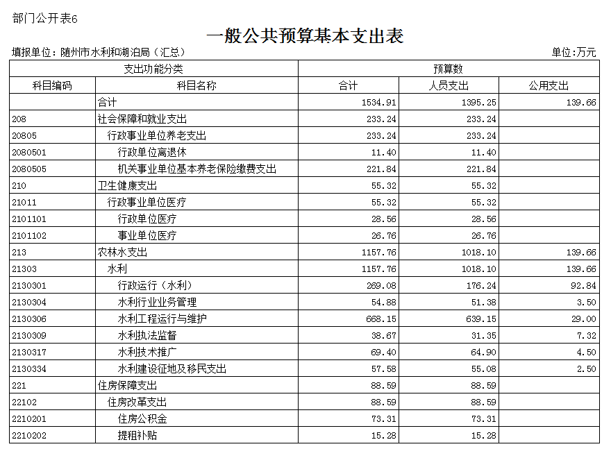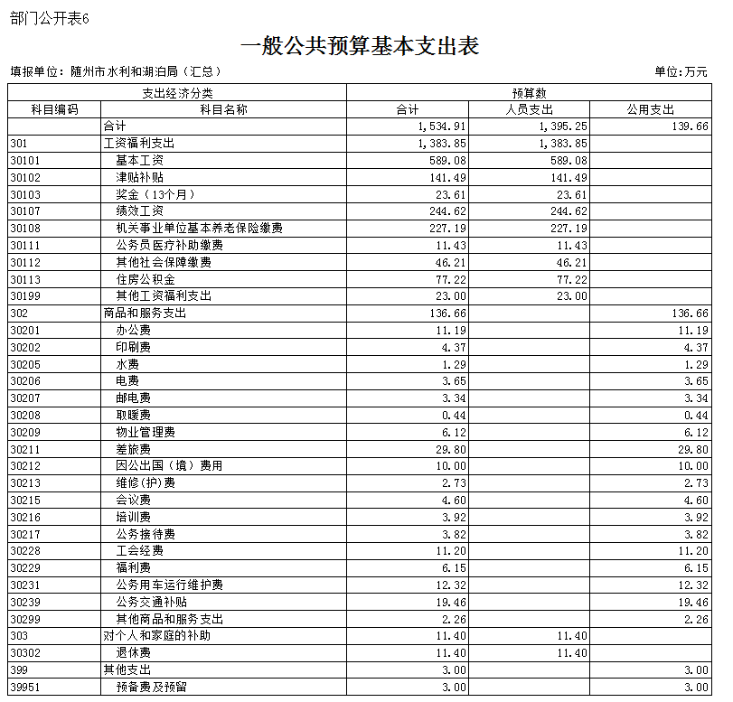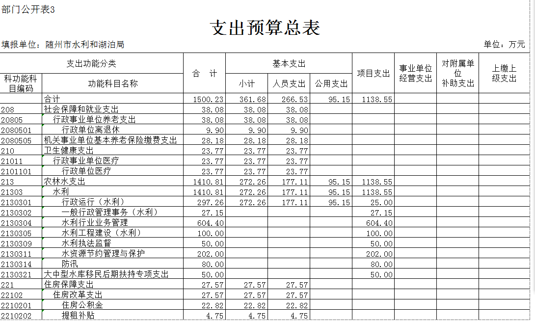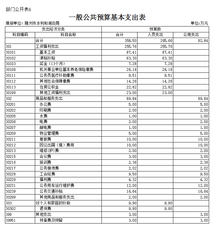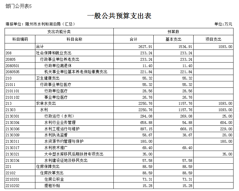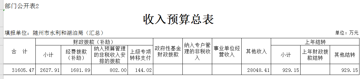 第三部分? 隨州市水利和湖泊局2020年部門預算表