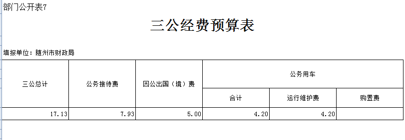 2020年市財政局“三公”經費年初經費撥款(補助)預算安排17.13萬元,其中公務接待費7.93萬元,因公出國(境)費5萬元,公務用車運行維護費4.20萬元。比上年減少0.67萬元,同比減少3.76%,主要原因是進一步壓縮公務接待費用。