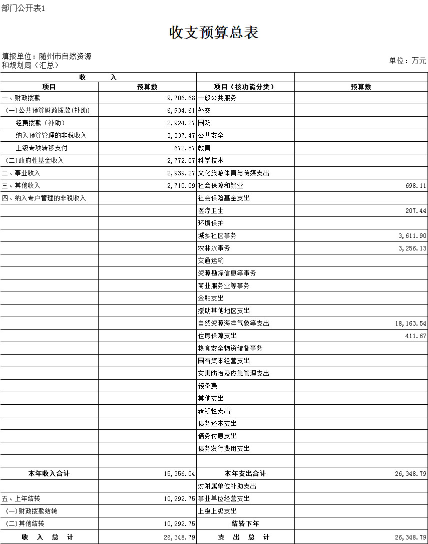 一、部門收支預算總表
