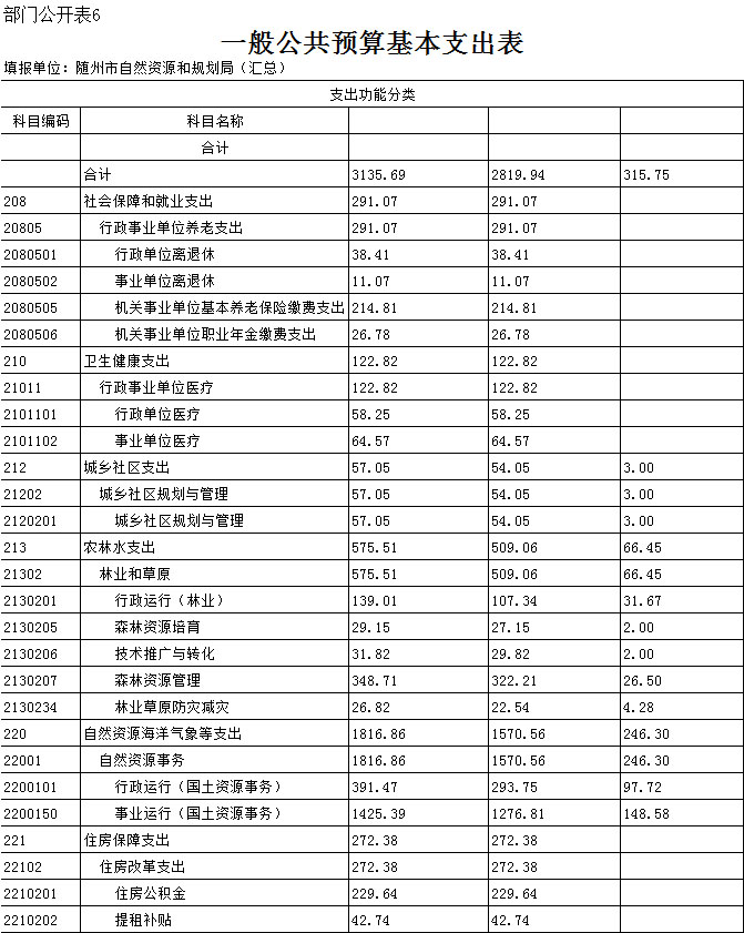 第三部分 ?隨州市自然資源和規劃局2020年部門預算表