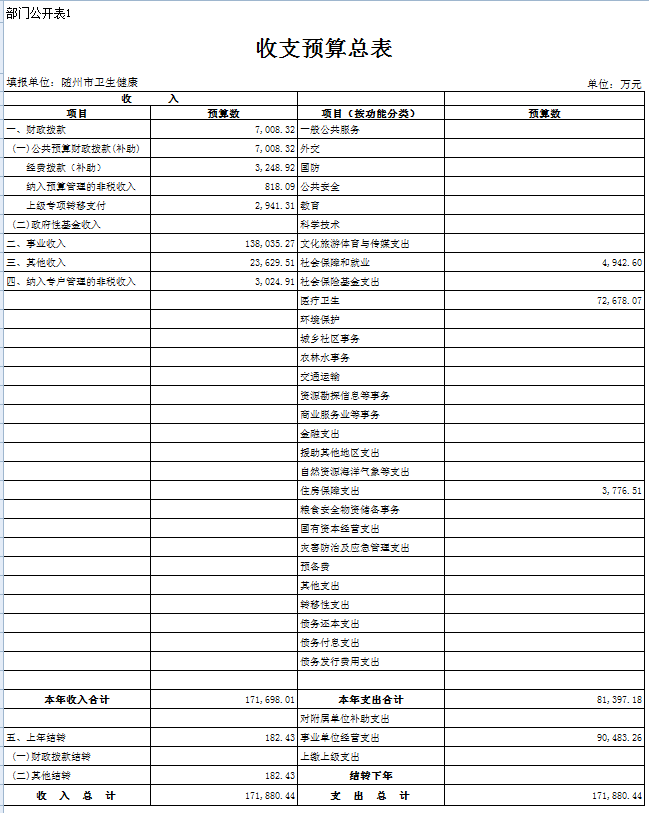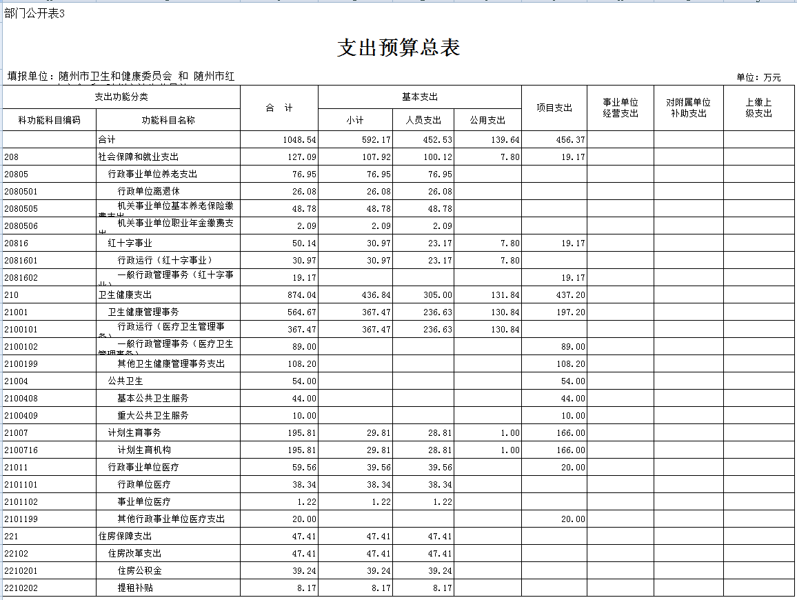 二、隨州市市直衛健系統2020年匯總預算情況說明