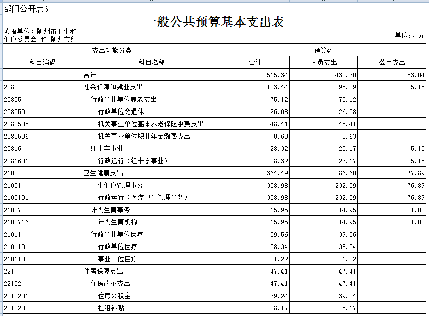 2020年財政撥款支出預算總額3248.92萬元,較上年減少96.18元,降幅2.88%,降幅原因是減少醫療衛生機構項目補助經費。