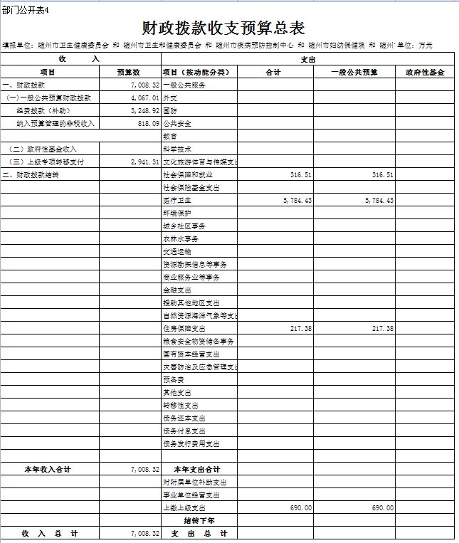 二、隨州市衛健委2020年系統匯總預算情況說明