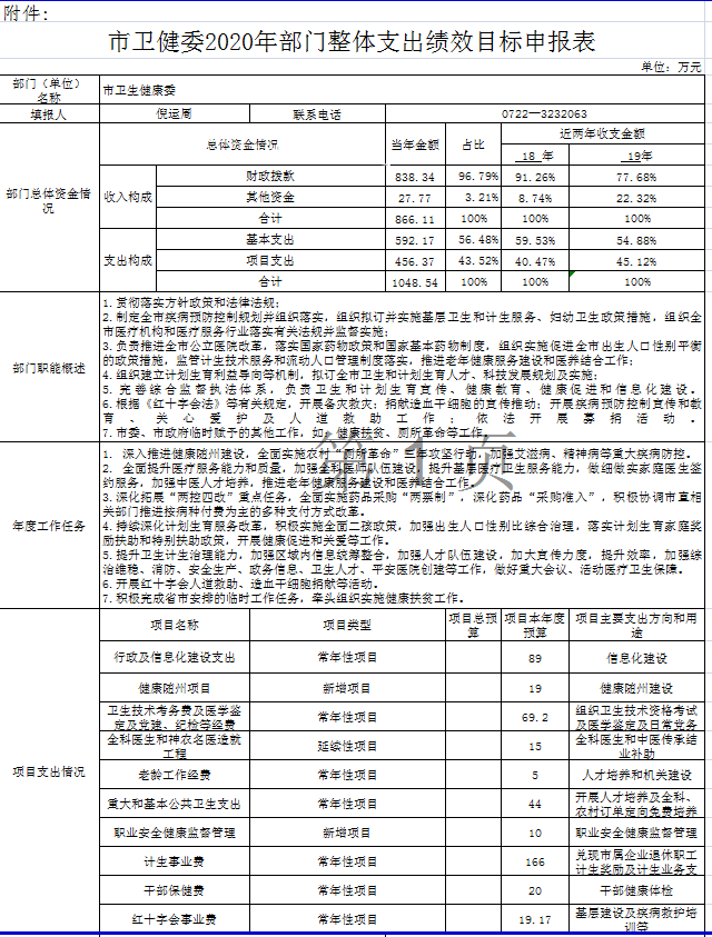 第二部分隨州市衛健委2020年部門預算和匯總預算情況說明