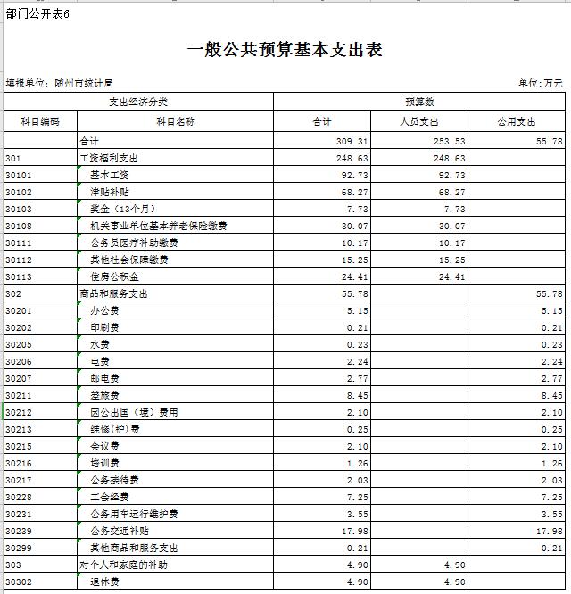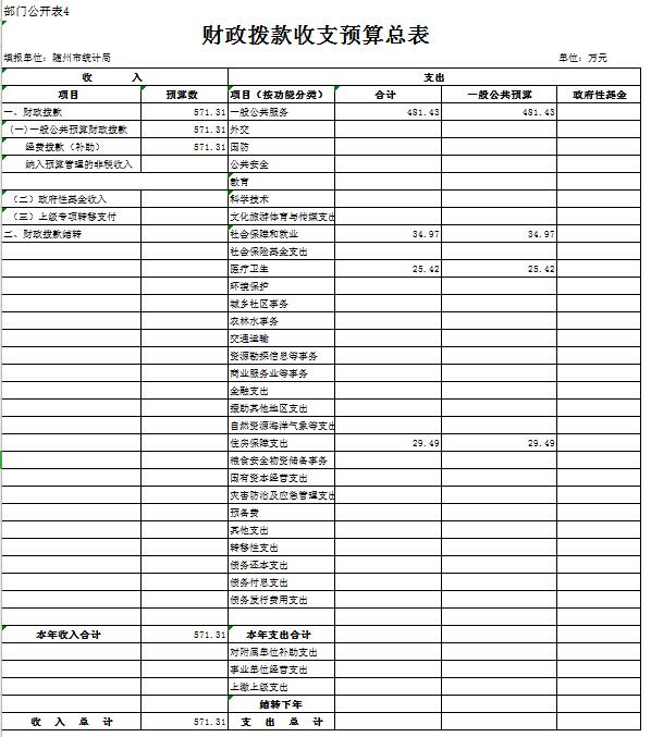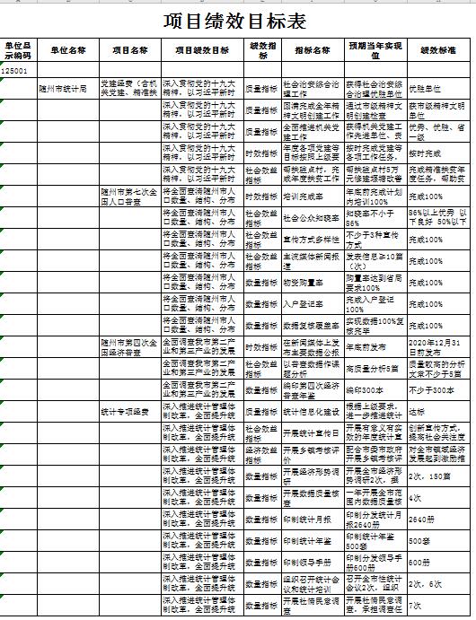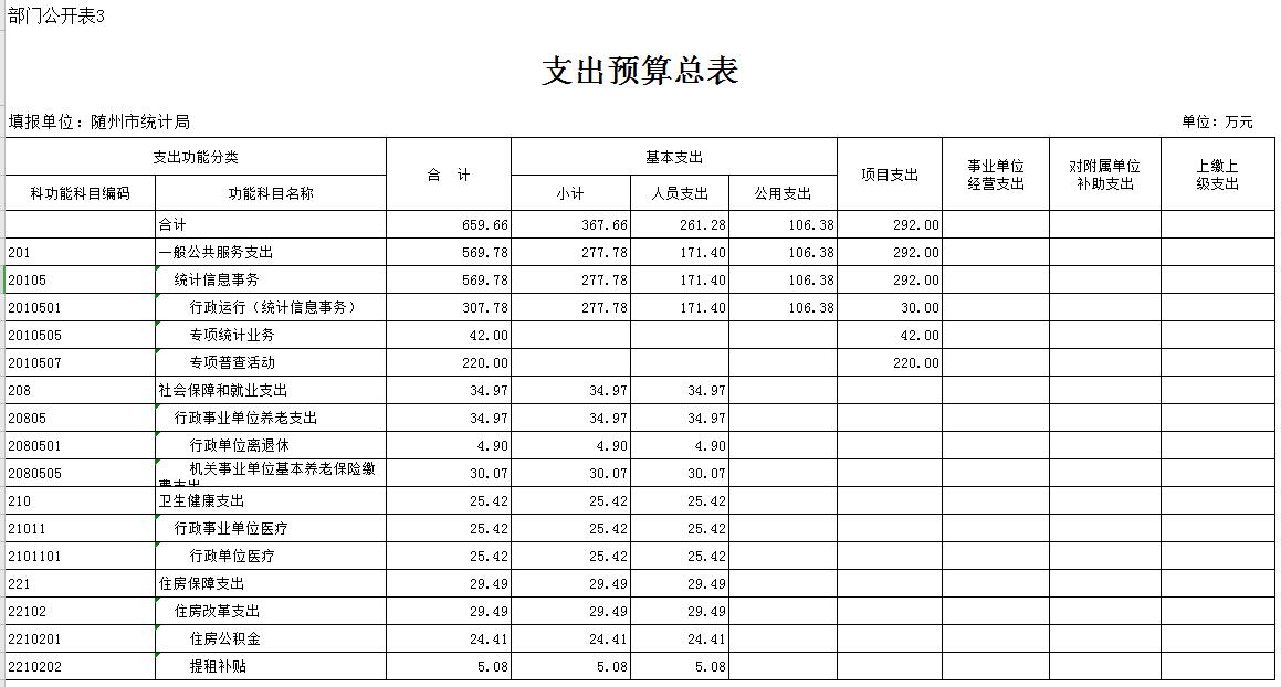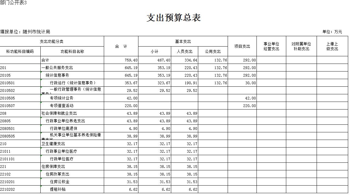 隨州市統計局(匯總)2020年收支總預算759.4萬元;隨州市統計局(本級)2020年收支總預算659.66萬元;
