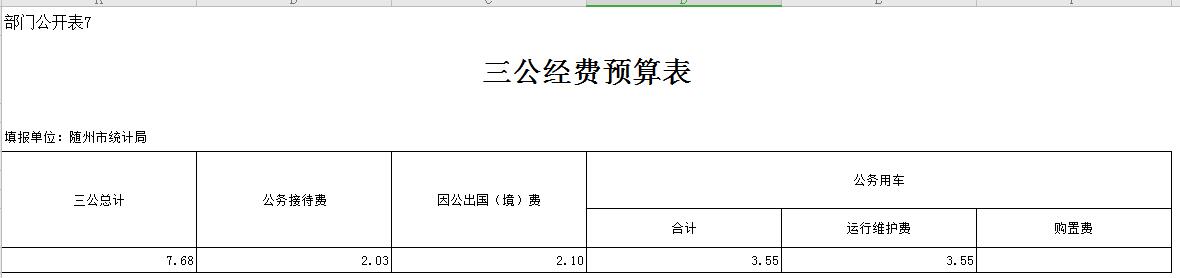 2020年隨州市統計局(本級)“三公”經費年初預算安排7.68萬元,比上年15.47萬元減少7.79萬元,同比減少50.36%,主要原因是:“三公”經費繼續大力壓縮開支。其中: