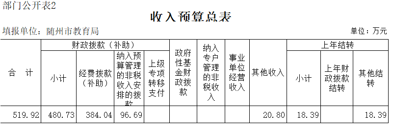 第三部分 隨州市教育局2020年部門預算表