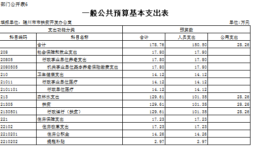 第三部分 隨州市人民政府扶貧開發辦公室2020年部門預算表