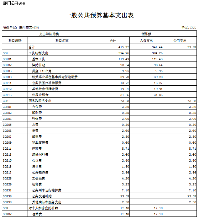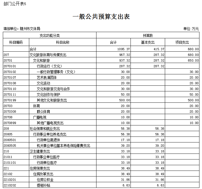 第三部分 ?隨州市文化和旅游局2020年部門預算表