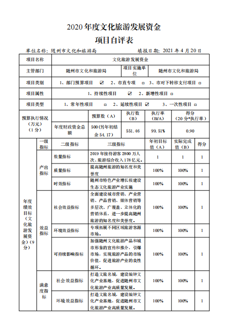 第四部分 ?隨州市文化和旅游局2020年預算績效情況