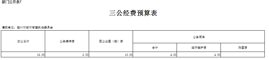 ? ? ? ???2020年城管執(zhí)法委系統(tǒng)“三公”經(jīng)費年初預(yù)算96.07萬元,比上年減少16.99萬元,減少15.03%。其中:因公出國(境)費10萬元,與上年持平,主要有因公出國計劃;公務(wù)接待費17.85萬元,比上年減少0.52萬元,主要原因為壓縮公務(wù)接待費用;公務(wù)用車運行維護費68.22萬元,比上年減少16.47萬元,原因為壓縮公務(wù)用車運行維護費支出;公務(wù)用車購置費用0萬元,與上年持平,主要原因為嚴(yán)格壓縮不必要的開支。