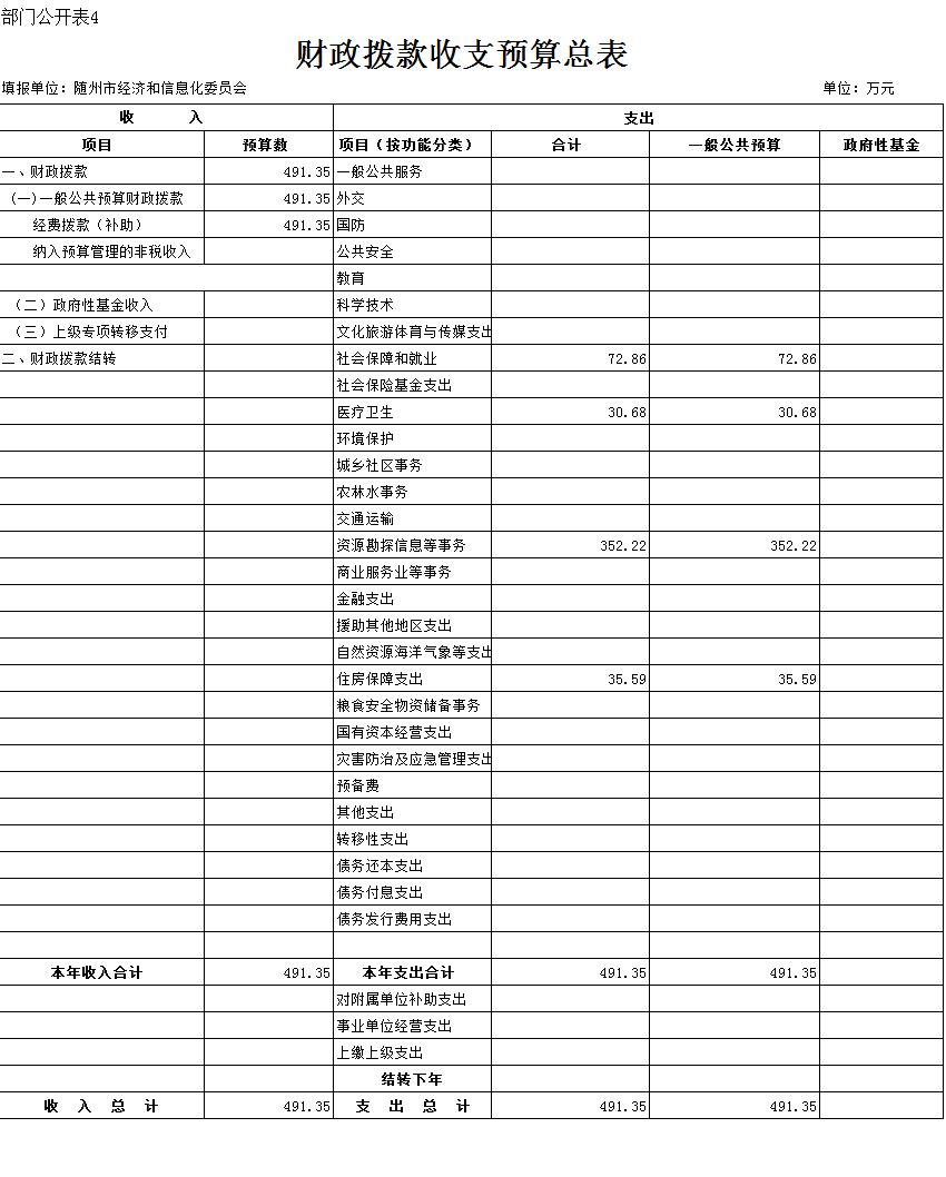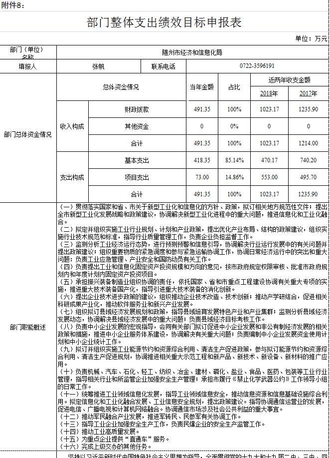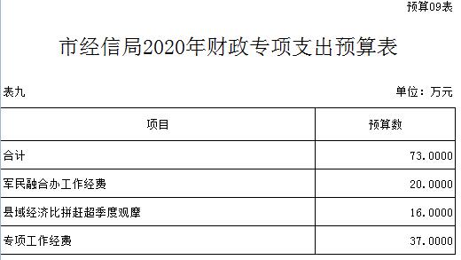 依據《隨州市財政局關于下達2020年市直部門預算的通知》,2020年隨州市經信局預算指標如下: