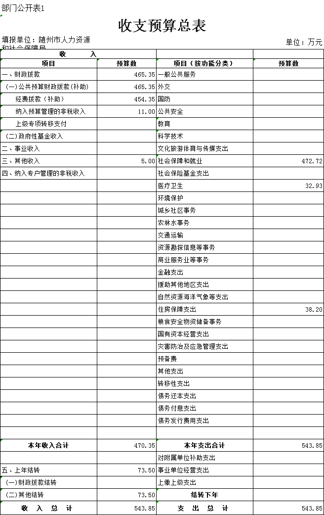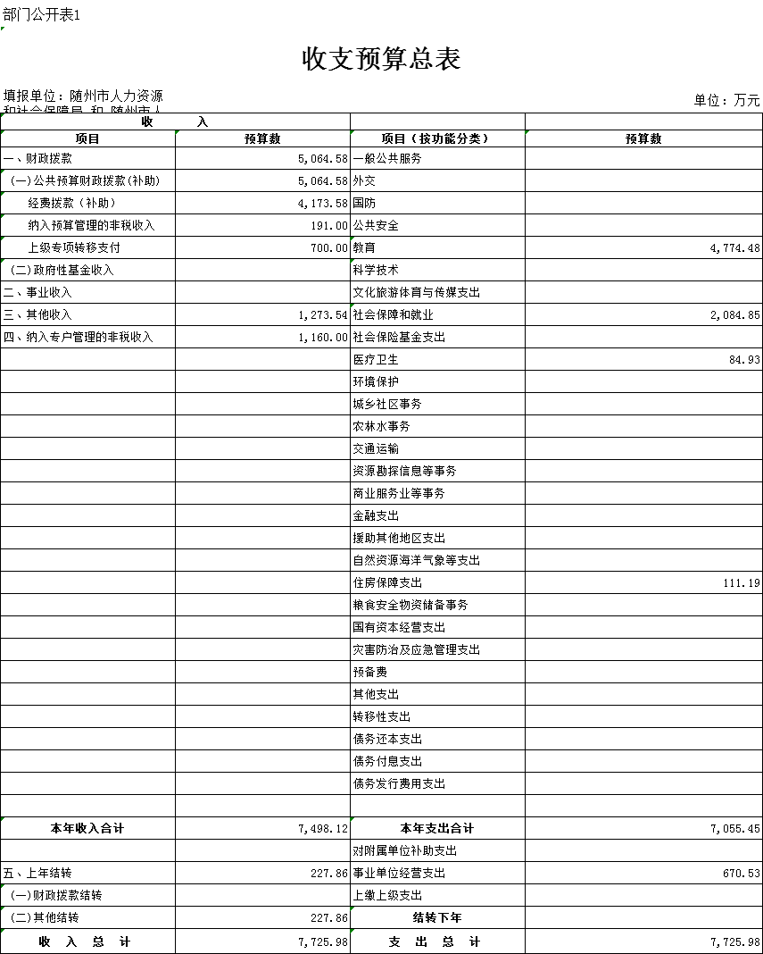 一、部門收支預算總表