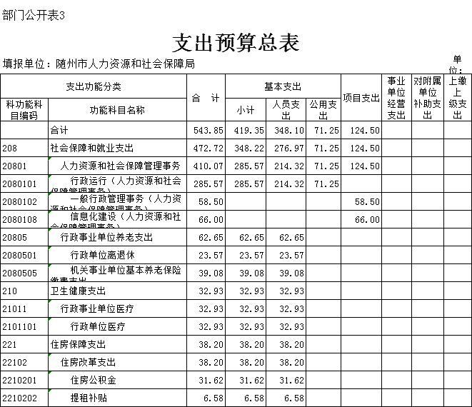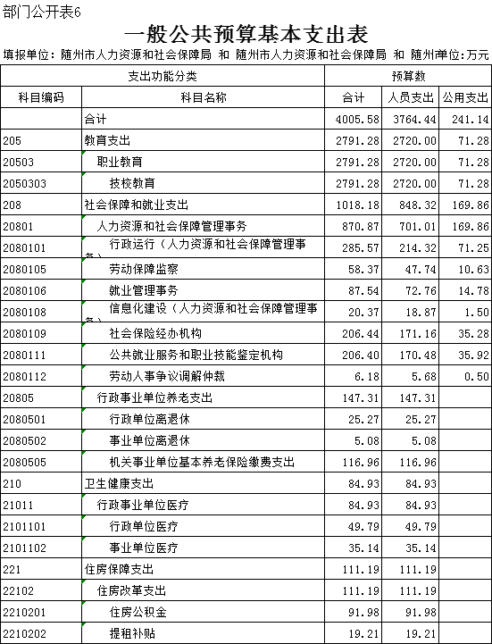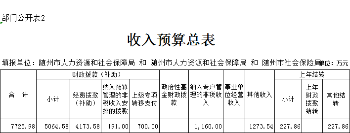 第三部分 ?隨州市人社局2020年部門預算表
