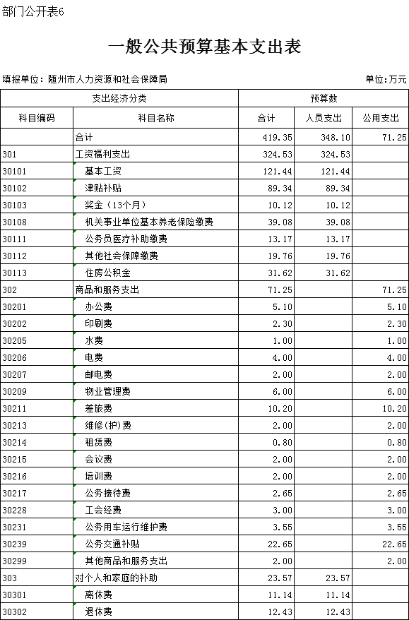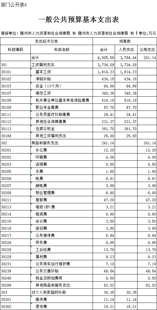 六、一般公共預算基本支出表