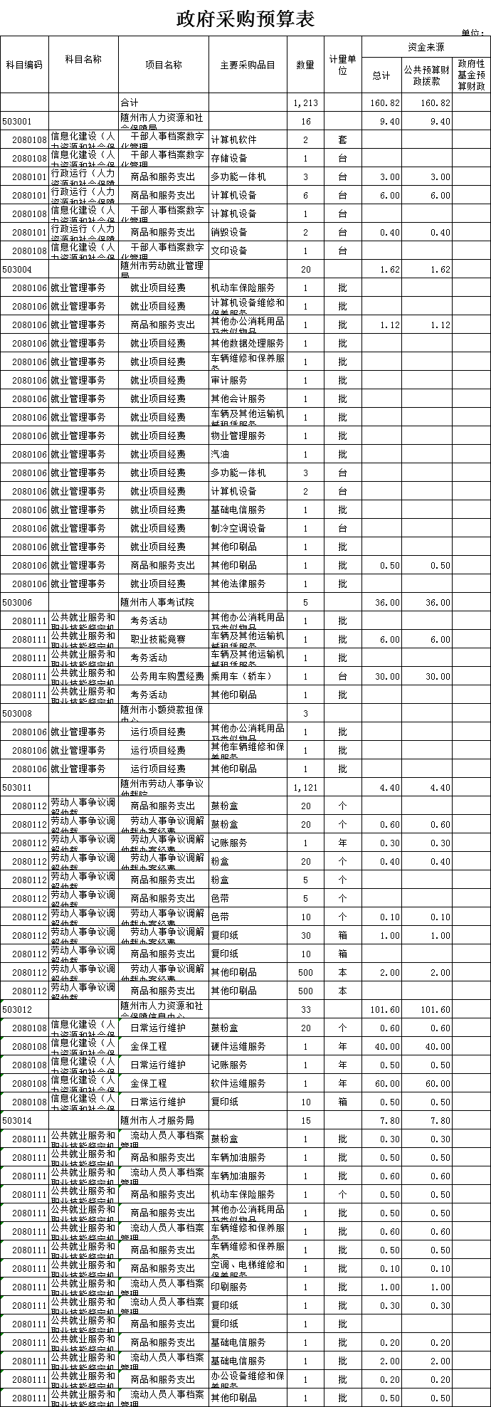 2020年局系統預算政府采購160.82萬元,主要用于考試院公車購置和職業技能競賽,信息中心金保工程日常維護,仲裁庭裝修。政府采購比上年減少3.81萬元,減幅2%。原因是:技師學院產教融合項目上年已開支。