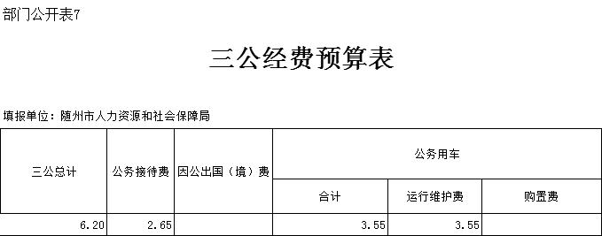 ??? 2020年部門“三公”經費預算安排6.2萬元,比上年減少0.68萬元,減幅9%。原因:人員減少,相應減少了“三公”經費。其中公務接待費2.65萬元,比上年減少0.68萬元,減幅2%,減少原因:嚴格控制“三公”經費支出。2020年無因公出國人員計劃,所以因公出國(境)費未做預算,與上年持平。主要原因:2020年無出國計劃。2020年,局機關無公務車購置支出預算,公務用車1輛,公務車運行維護費3.55萬元,比上年3.55萬元持平。