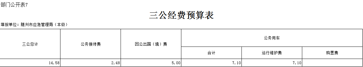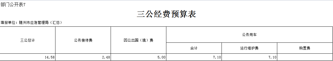 2020年隨州市應急管理局本級“三公”經費年初預算安排14.58萬元。比上年增加了2.48萬元,同比增長20.49%。