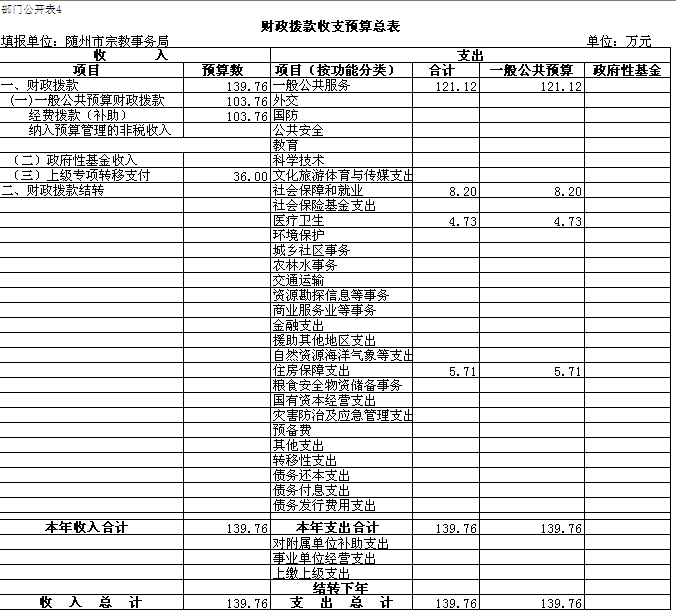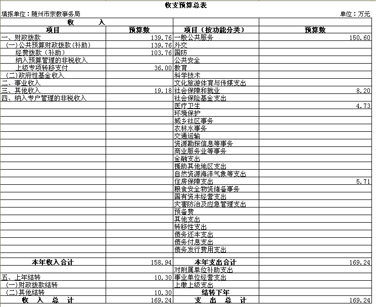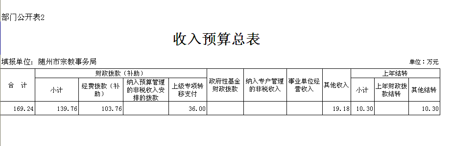 第三部分 隨州市民族宗教事務局2019年部門預算表