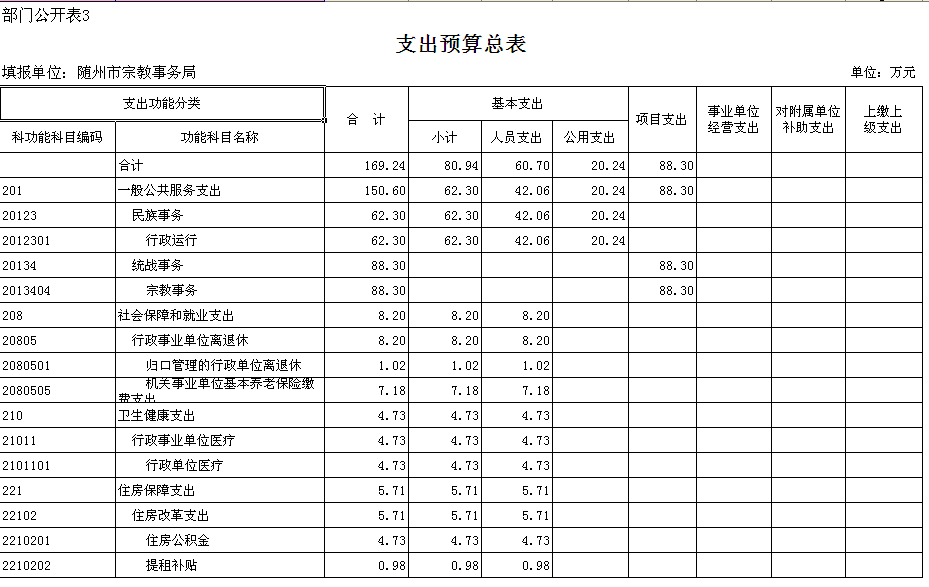 2210202 一般公共服務(類)住房改革支出(款)提租補貼支出(項):指市民宗局用于對機關個人和家庭的補助支出。