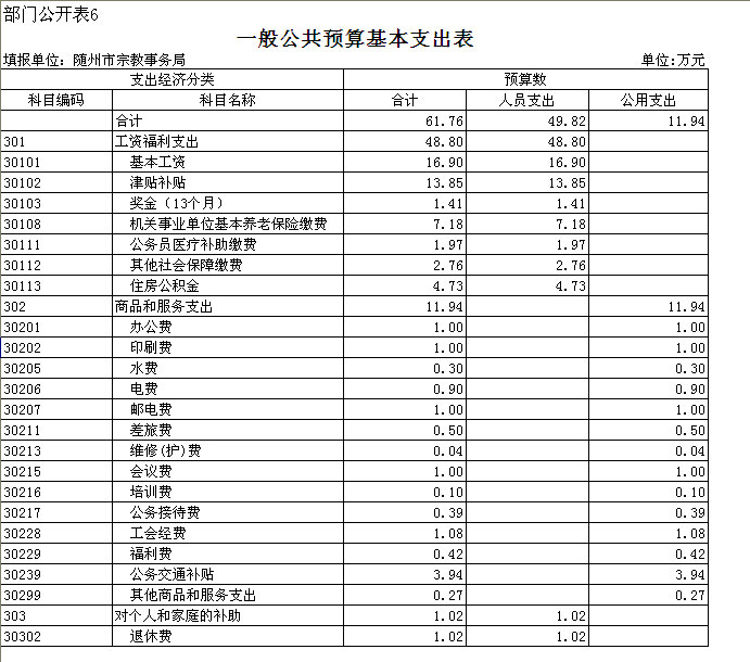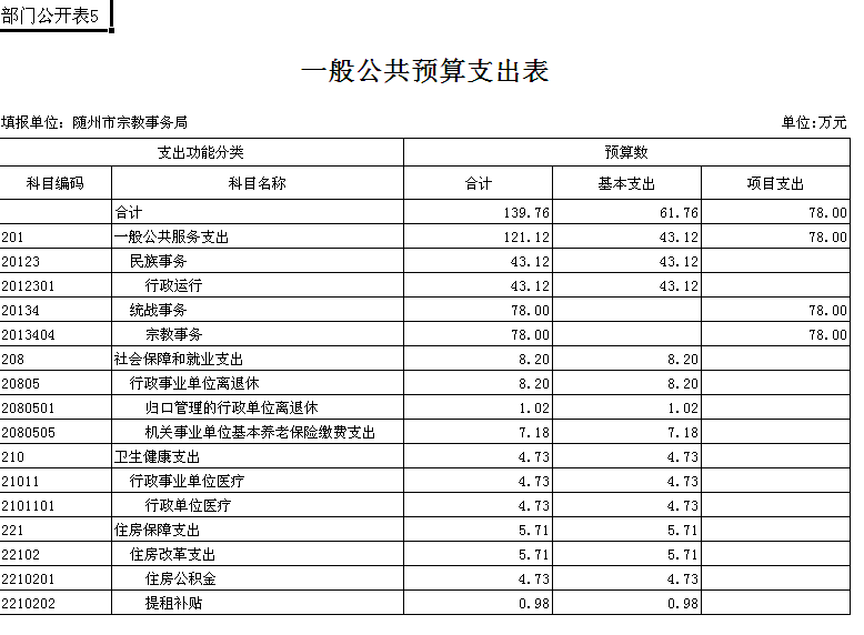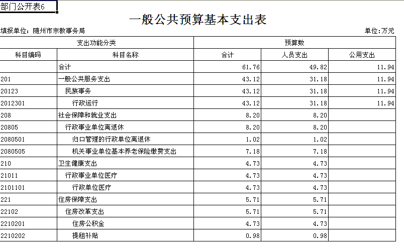 | 部門(單位) 名稱 | 隨州市民族宗教事務局 | |||||||||