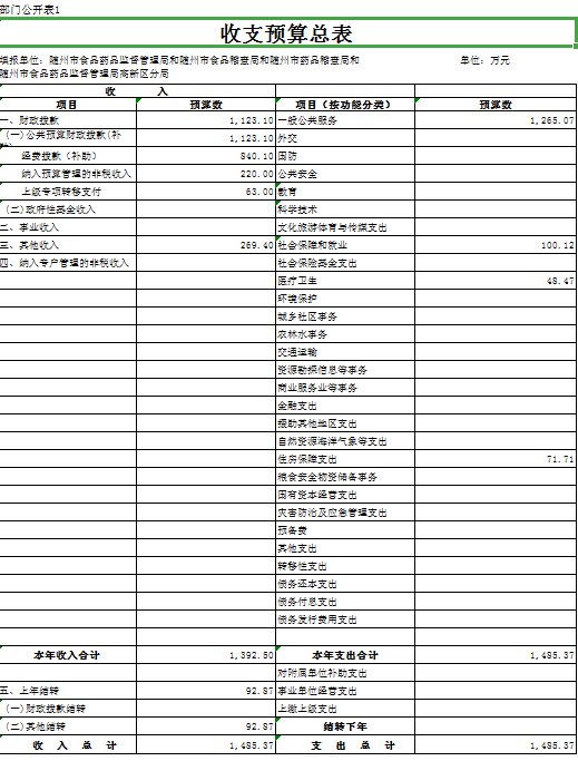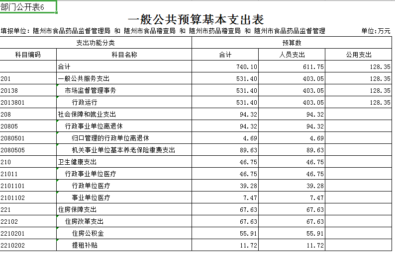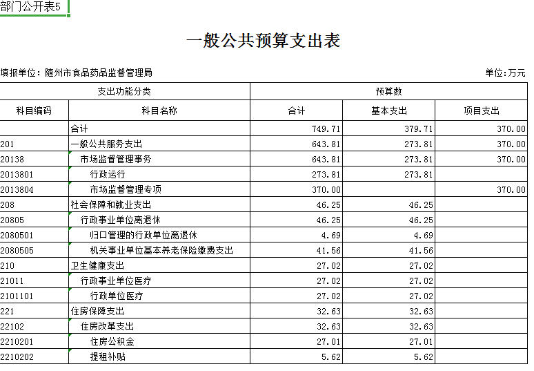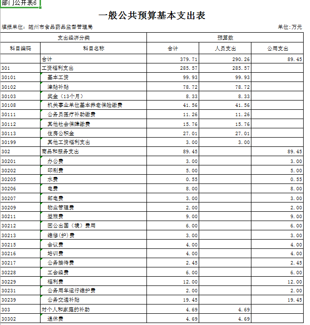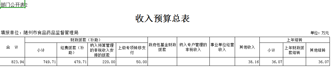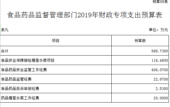第三部分 隨州市食品藥品監督管理局2019年部門預算表