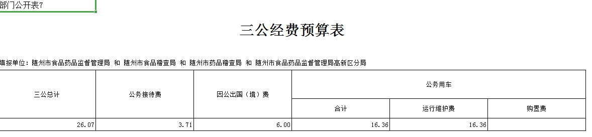 2019年隨州市食品藥品監督管理局“三公”經費年初預算安排15.45萬元,總體較上年減少0.60萬元,減少比例為3.74%,增減主要原因是根據上年支出情況對預算進行了調整。其中:公務接待費2.45萬元,比上年持平;因公出國(境)費6.00萬元,比上年增加1.00萬元,增加比例為20%,增加主要原因是參照近三年因公出國支出情況而調整了預算;公務用車運行維護費7.00萬元,比上年減少1.6萬元,減少比例為18.60%,減少的主要原因是:執法車輛較少(保有量2輛),執法時,使用公務車平臺車輛成本較低,導致車輛運行維護費用減少。無公務用車購置預算。