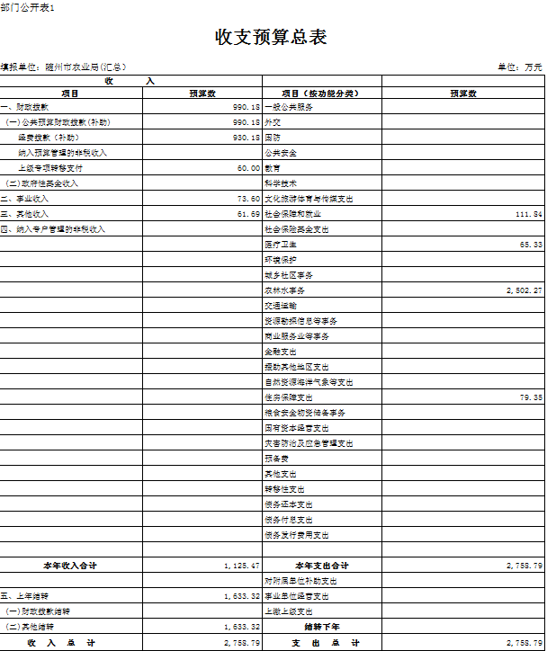 2019年隨州市農業局(匯總)支出預算總額2758.79萬元,比上年2011.38萬元增加747.41萬元,增加37.16%,主要原因為2019年安排的項目支出增加。按資金性質分: