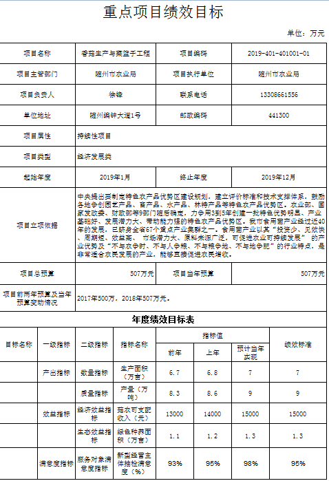 2、項目支出預算安排1292.81萬元,比2018年487萬元增加805.81萬元,增加165.46%,主要原因是加大了農業生產方面的支持。