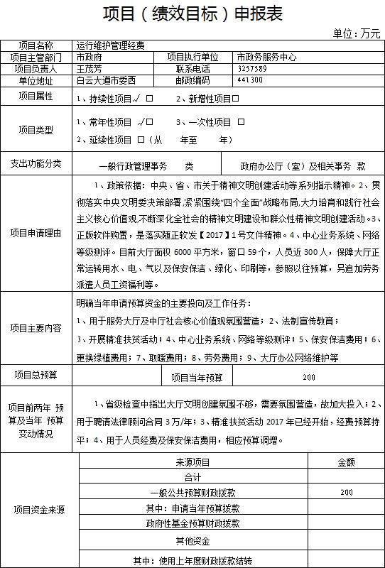 9、機關運行經費:為保障行政單位運行用于購買貨物和服務的各項資金,包括辦公費、印刷費、水電費、郵電費、差旅費、因公出國境費、會議費、福利費、培訓費、公務接待費、工會經費、日常維修費萬元、辦公用房水電費、辦公用房取暖費、辦公用房物業管理費、公務用車運行維護費及其他費用。